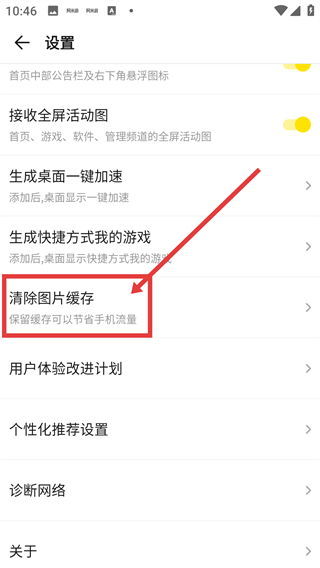 3、在设置页找到【清除图片缓存】选项并点击,就能触发缓存清理的确认提示框啦。
