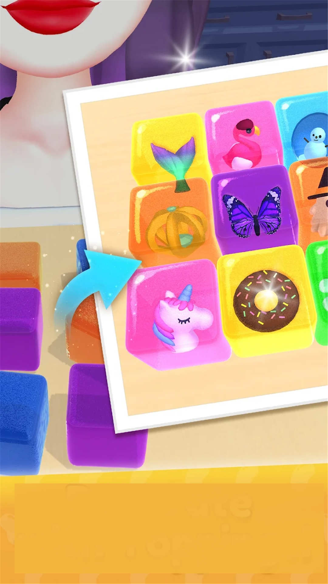 1、这是一个缓解压力的模拟游戏。做一个美味的缓解压力的果冻,拿着材料做一个五颜六色的果冻软糖。
