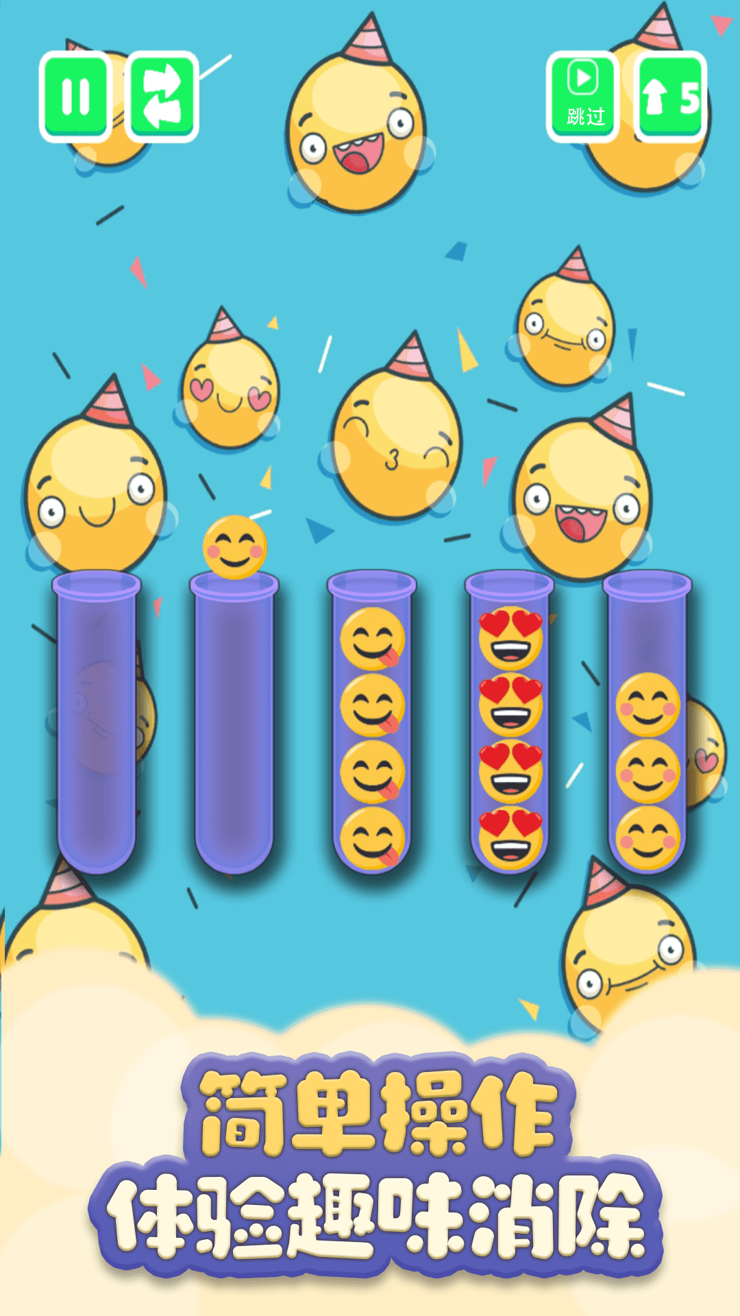 1、一个休闲有趣的表情包消除游戏来了,发挥你的聪明才智,相同的表情包被组合在一起!