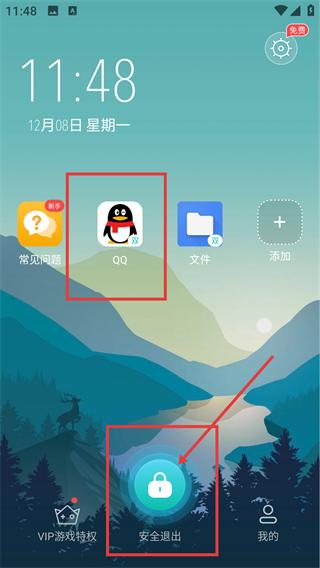 3、添加完成后返回主界面,点击【安全退出】按钮,就能触发隐藏应用的无痕退出流程啦。