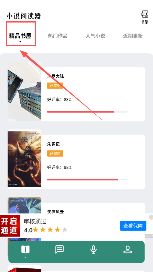1、利用“精品书屋”的筛选功能快速找书,已完结和好评率高的作品如天庐风云会被明确标出,能帮你节省不少挑书的时间呢。