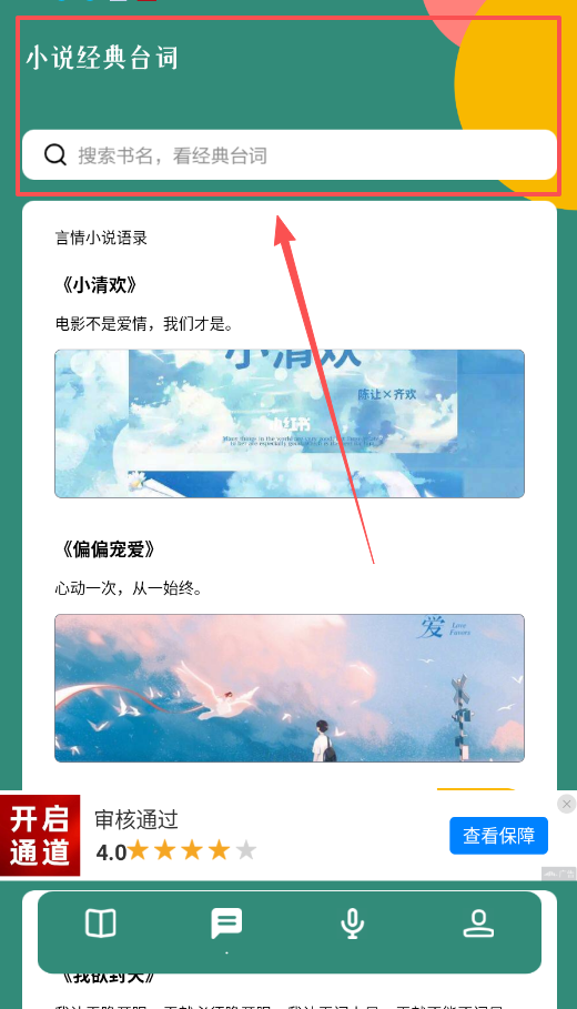 2、如果你钟情于某些小说的经典对白,直接进入“小说经典台词”模块,那里汇集了像“电影不是爱情,方便你回味。