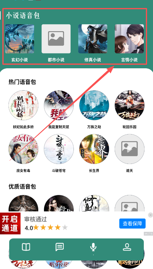 3、通勤或休息时,可以打开“小说语音包”选择修真、都市等类别,直接播放万族之劫、我能复制天赋等作品,把阅读变成倾听。