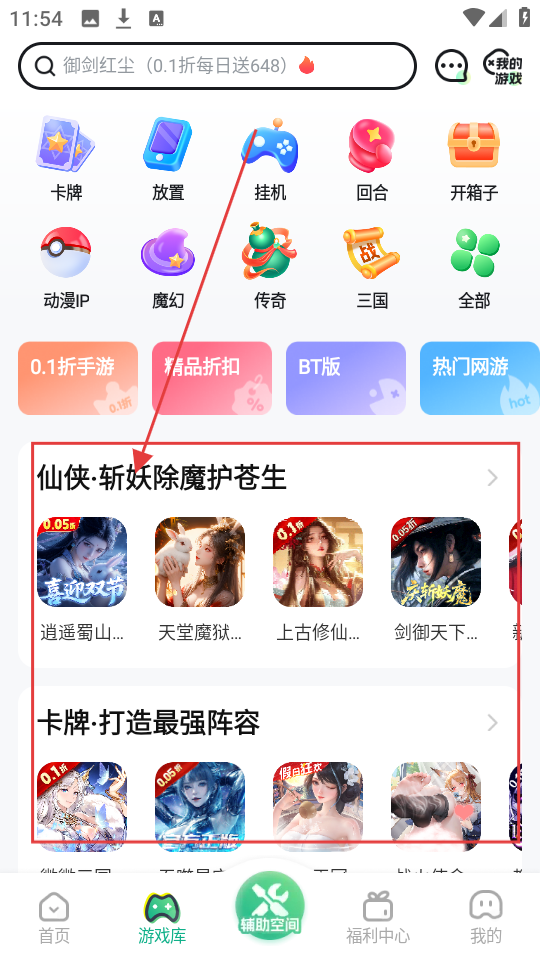 1、在游戏库页面,挑选感兴趣的游戏分类,找到想玩的游戏,点击进入详情页。