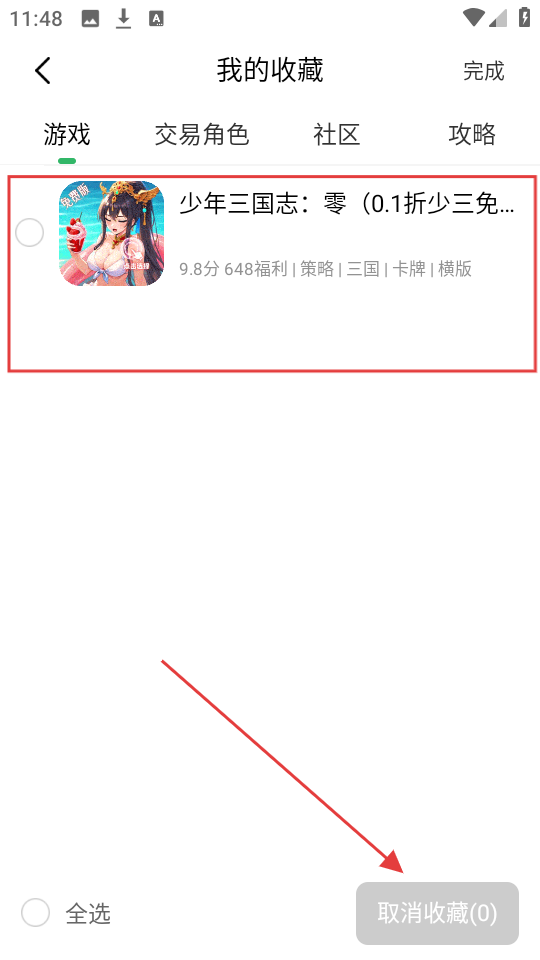 4、进入编辑模式后,我们可以选择要取消收藏的游戏,然后点击【取消收藏】,就能取消对该游戏的收藏啦。