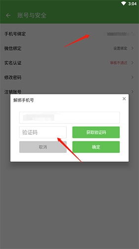3、点击“手机号绑定”,输入验证码,即可解绑。