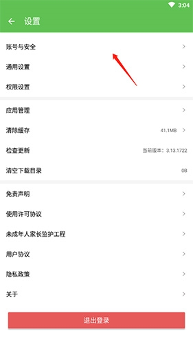 2、点击“账号与安全”选项。