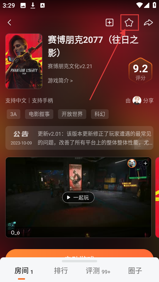 2、进入《赛博朋克2077(往日之影)》详情页,若想收藏,点击右上角星星图标,就能尝试收藏操作哦。