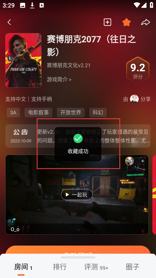 3、点击后,会提示“收藏成功”,说明游戏已成功收藏,之后找起来就方便啦。