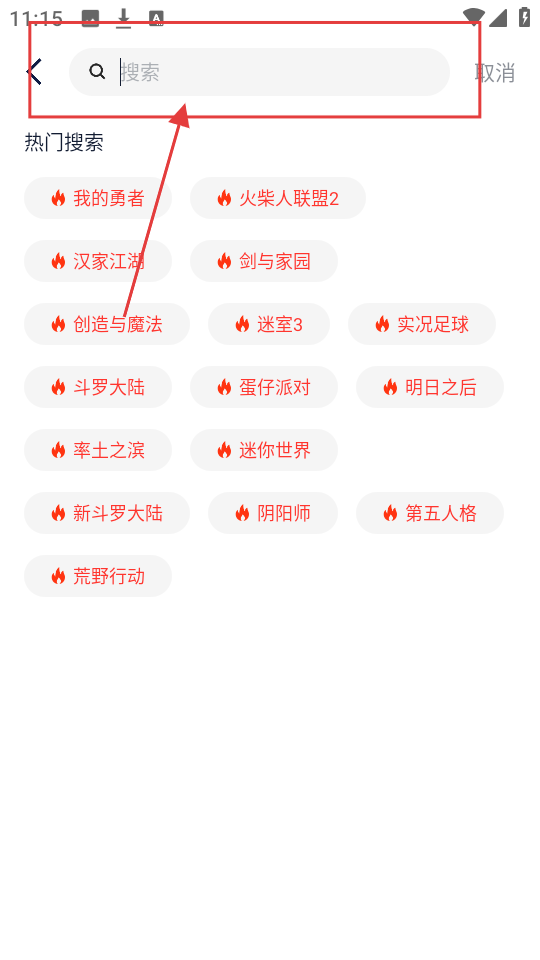 1、在精品页点顶部【搜索】框哦,这是查找游戏的第一步呢。