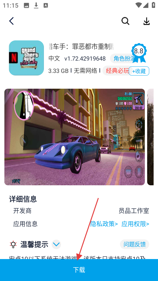 4、进入游戏页面后点【下载】按钮哦,这样就能开始下载游戏啦。
