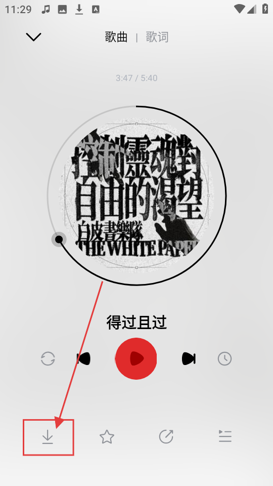 2、歌曲播放时,看到界面下方的下载图标,赶紧点击它,这样就能进入下载相关的操作界面啦。