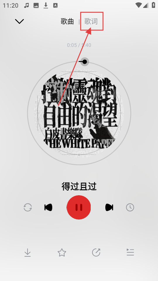 3、在歌曲播放详情页面,点击【歌词】选项,切换到歌词显示界面,能查看歌曲歌词呢。