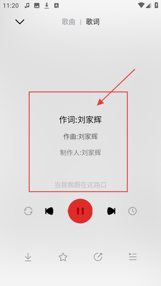 4、在歌词显示界面,即可查看歌曲的作词、作曲等信息,方便了解歌曲创作相关内容啦。
