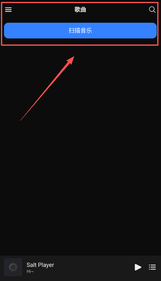 1、启动椒盐音乐,在主界面下方找到并点击那个写着“扫描音乐”的入口,系统可能会请求文件访问权限,请务必选择允许。
