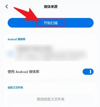 2、随后你会进入“媒体来源”设置页,上半部分的“Android媒体库”适合快速扫描全手机歌曲,如果有些音乐在角落没扫到。