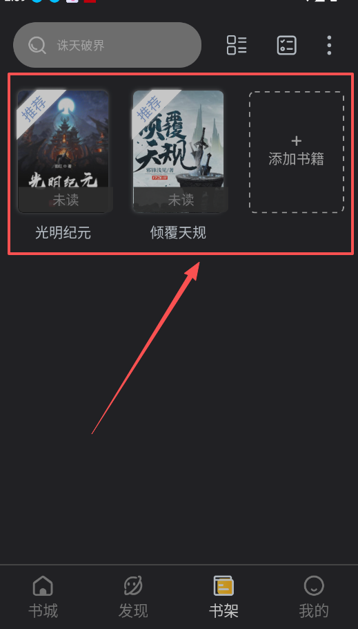 2、收藏书籍很简单,在“书架”界面使用“添加书籍”功能,输入书名或作者名,比如搜索夜落长安,就能把它收纳到个人书架里方便管理。