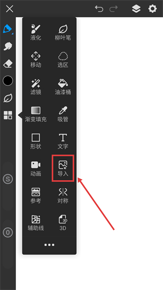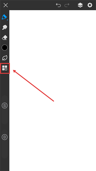 1、在绘画界面点击左侧的功能菜单按钮,可展开更多编辑工具选项哦。