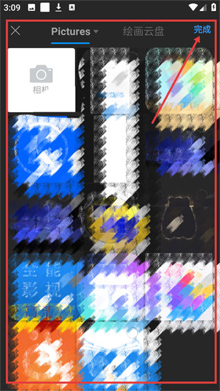 3、在图片选择页挑选要导入的素材,选好后点击【完成】即可将图片导入画布哦。