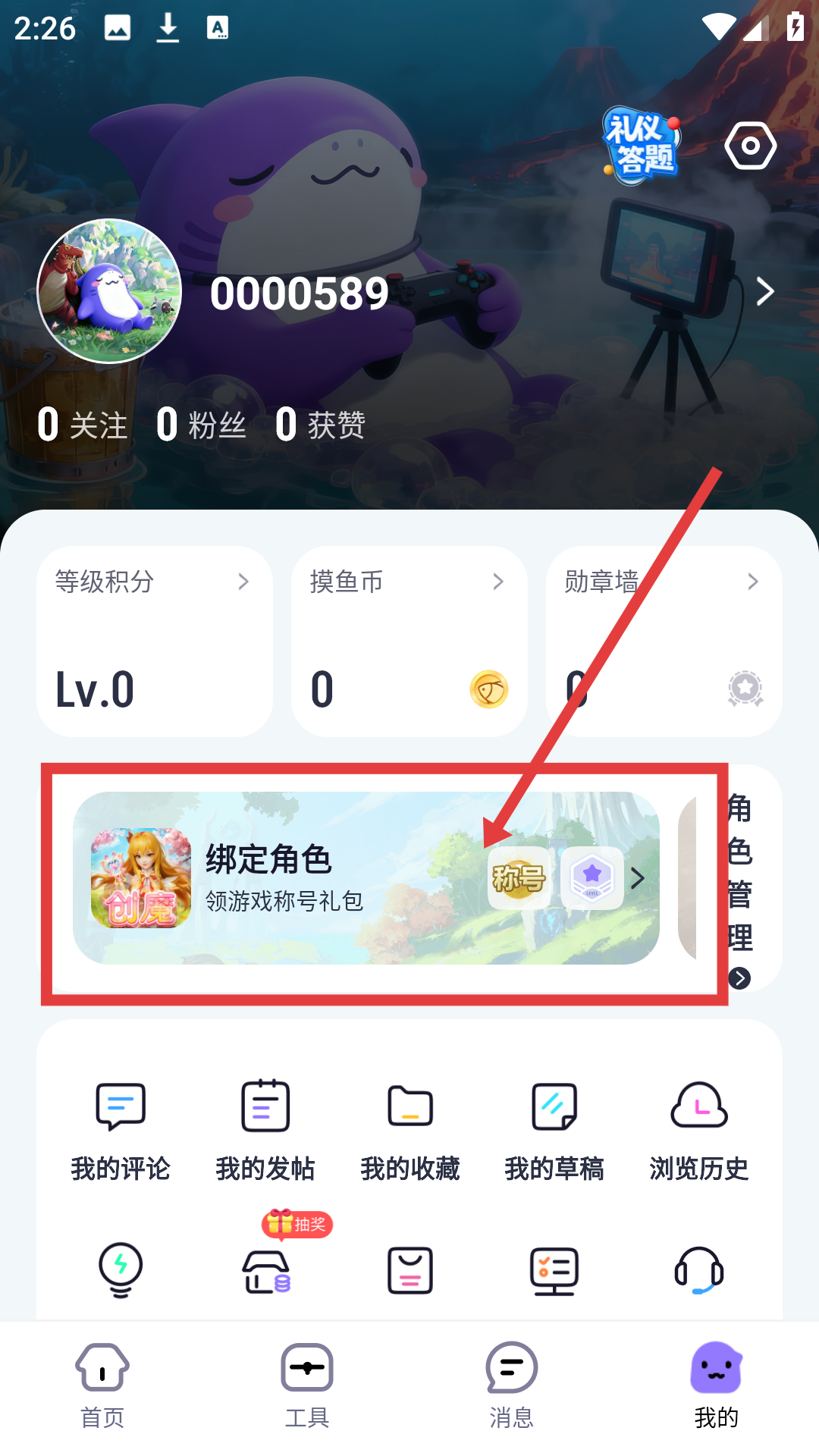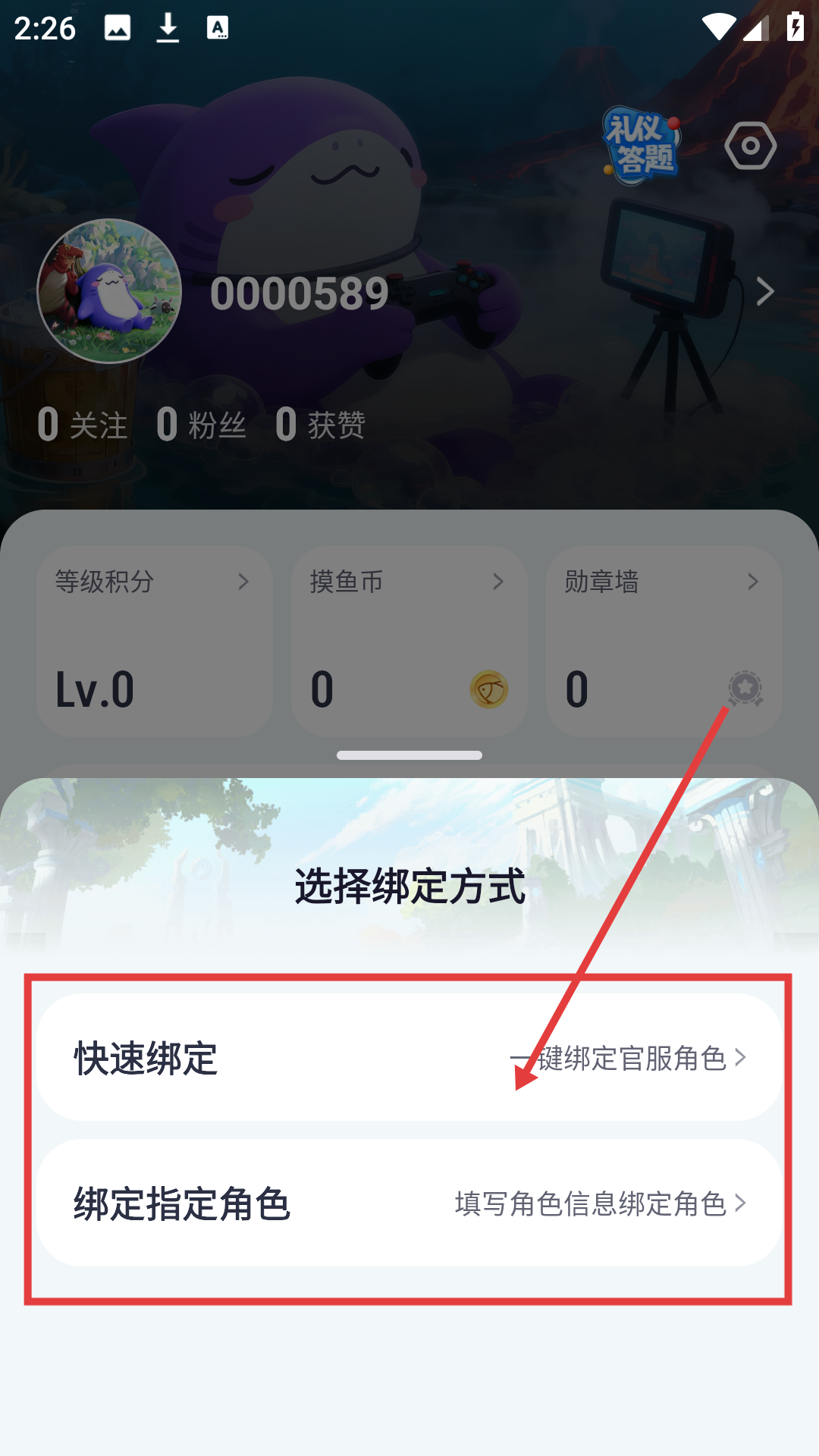 2、进入个人中心后,点击【绑定角色】,可进入绑定方式选择页面哦。