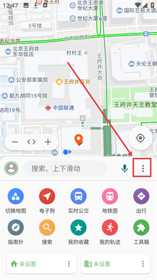 1、在APP主界面,点击搜索框旁的三点按钮,展开功能选项菜单,可查看各类配置入口啦。