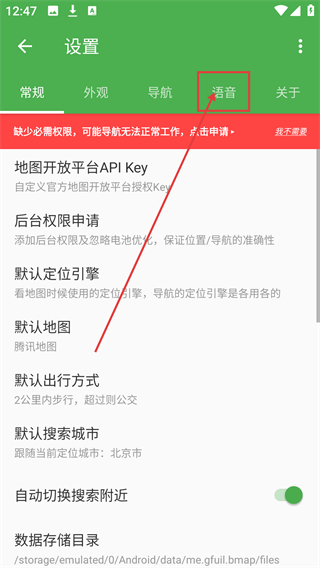 3、进入设置页面后,点击顶部的【语音】标签,切换到语音相关的设置界面,准备调整语音配置呀。