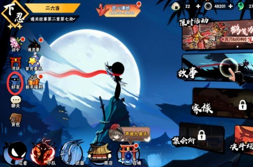 1、忍者必须死3游戏中,玩家可在主页面点击左侧好友图标。