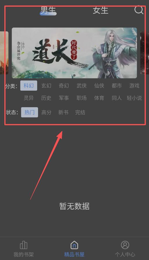 2、想找新书,可以通过首页的男生女生标签和详细分类来筛选,比如玄幻、都市、历史等。