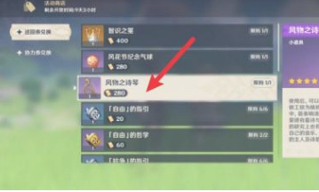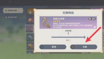 3.点击巡回券对话,选择风物之诗琴,点击兑换。