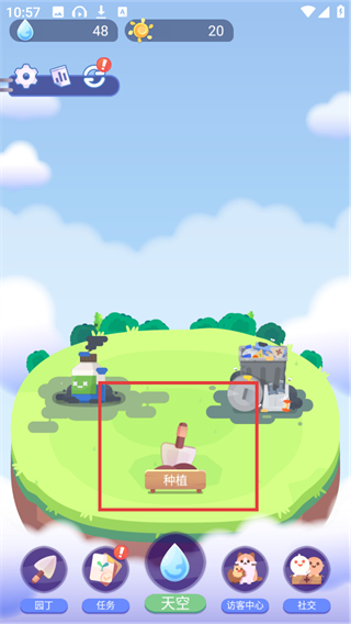 1、在游戏主界面点击【种植】按钮,就能唤起种新植物的弹窗,准备消耗资源种植植物啦。