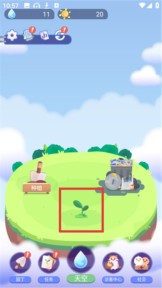 3、种植完成后回到主界面,能看到新的幼苗出现在场景中,说明植物种植成功啦。
