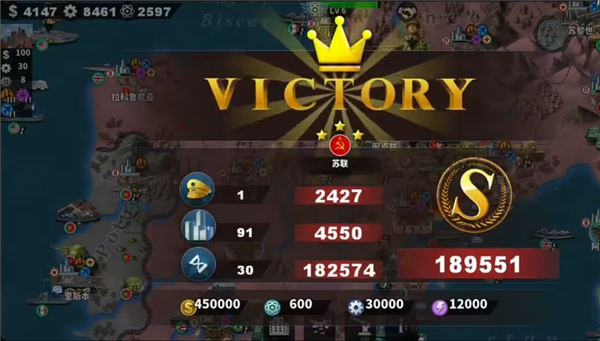 想快速获得大量资源有两种方法:一种就是刷征服,此法适合征服打的快的玩家,打完一局征服给大量资源,分数越高给的越多,提醒一下分数主要看回合数,回合越低分越高