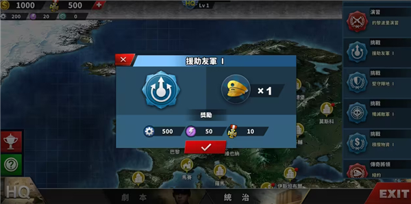 接着就是挑战,总共有4个挑战,分别是援助友军
