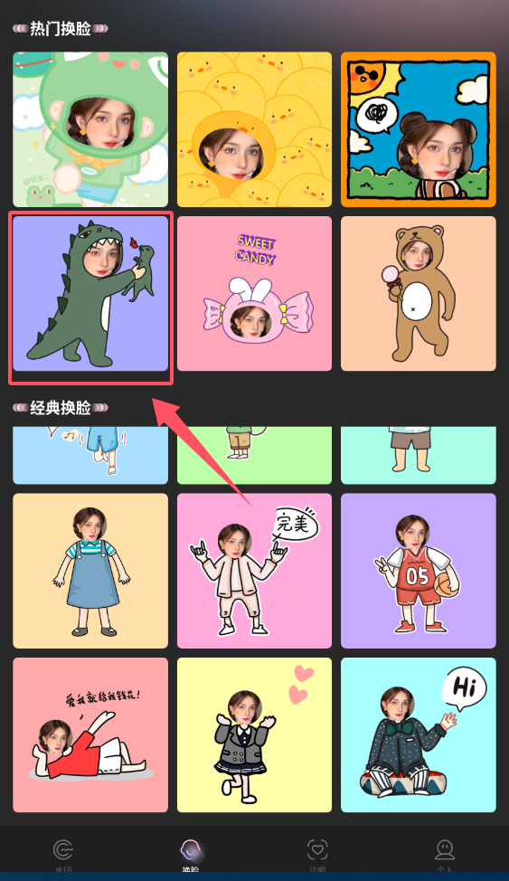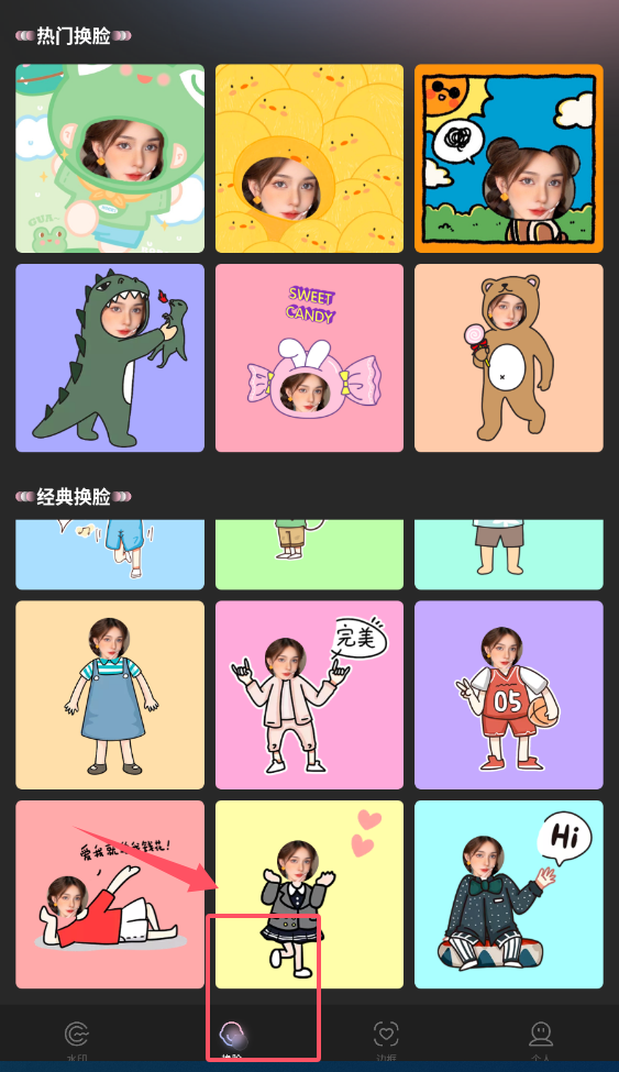 3、 得到初始转换结果后,若想增添更多个性元素,可进入编辑中心,为肖像添加动态特效或精美贴纸。