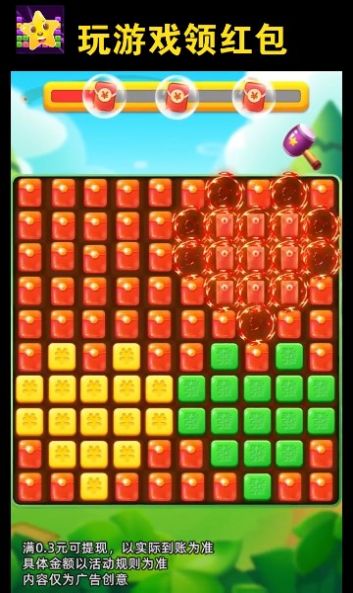 《嗨玩消消乐》游戏内的消除玩法非常有趣,玩家也要将里面的星星都给消除才行,每次消除都会有音效的。只要玩家你消除的够多那么就可以获得一些红包哦,都是能提现出来的,玩家也要在规定时间内完成的。游戏难度不大,你会很快上手,喜欢的话就来尝试吧。