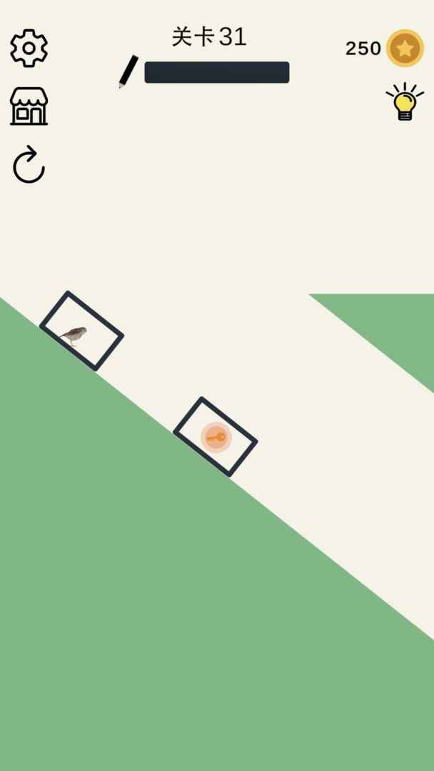 3、每一关的难度都在增加,救救那小鸟的规则很简单,你只需要画出任何形状来帮助小鸟找到钥匙。