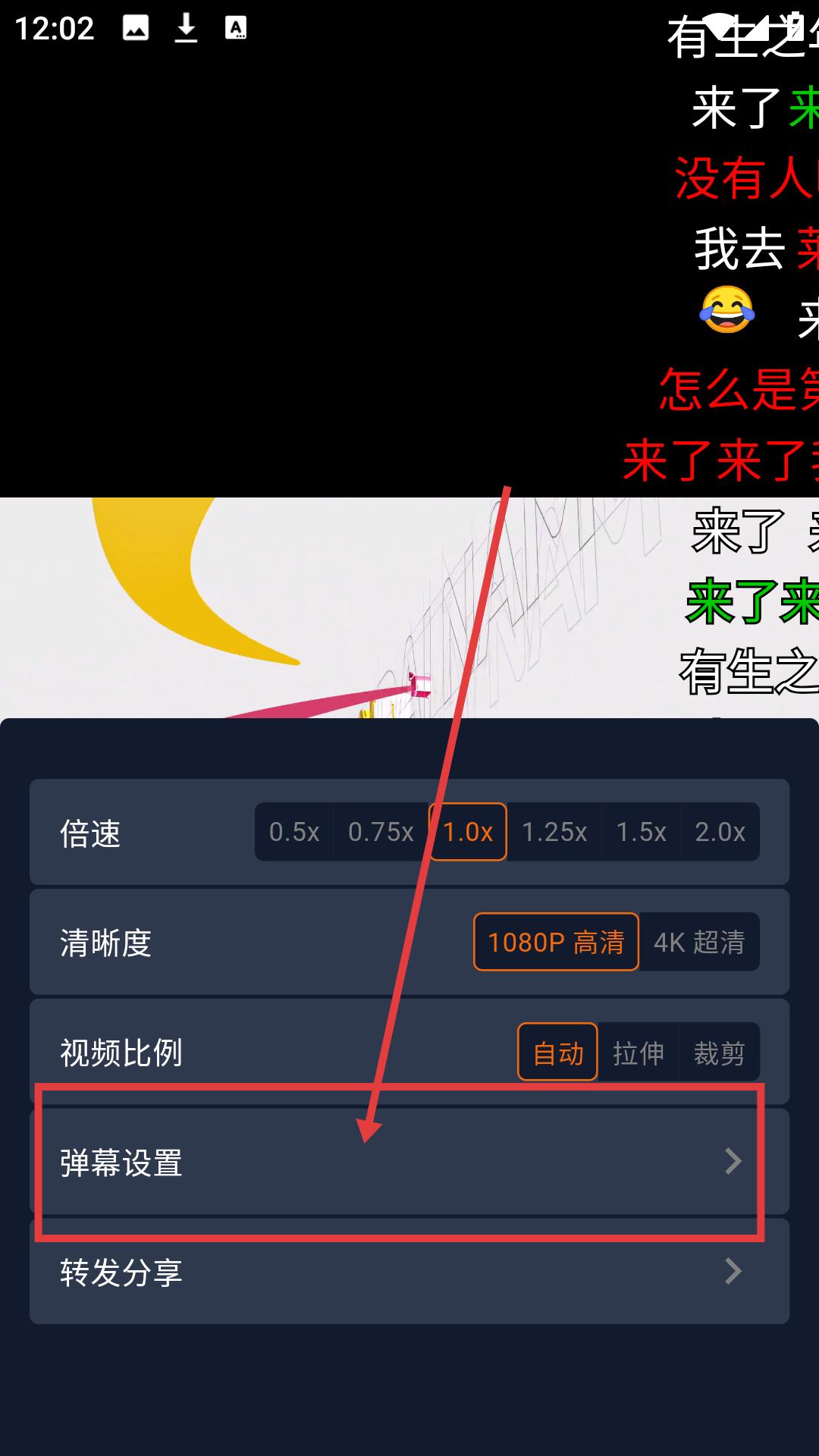 3、在功能菜单中点击【弹幕设置】选项,可进入弹幕设置页面调整弹幕效果哦。