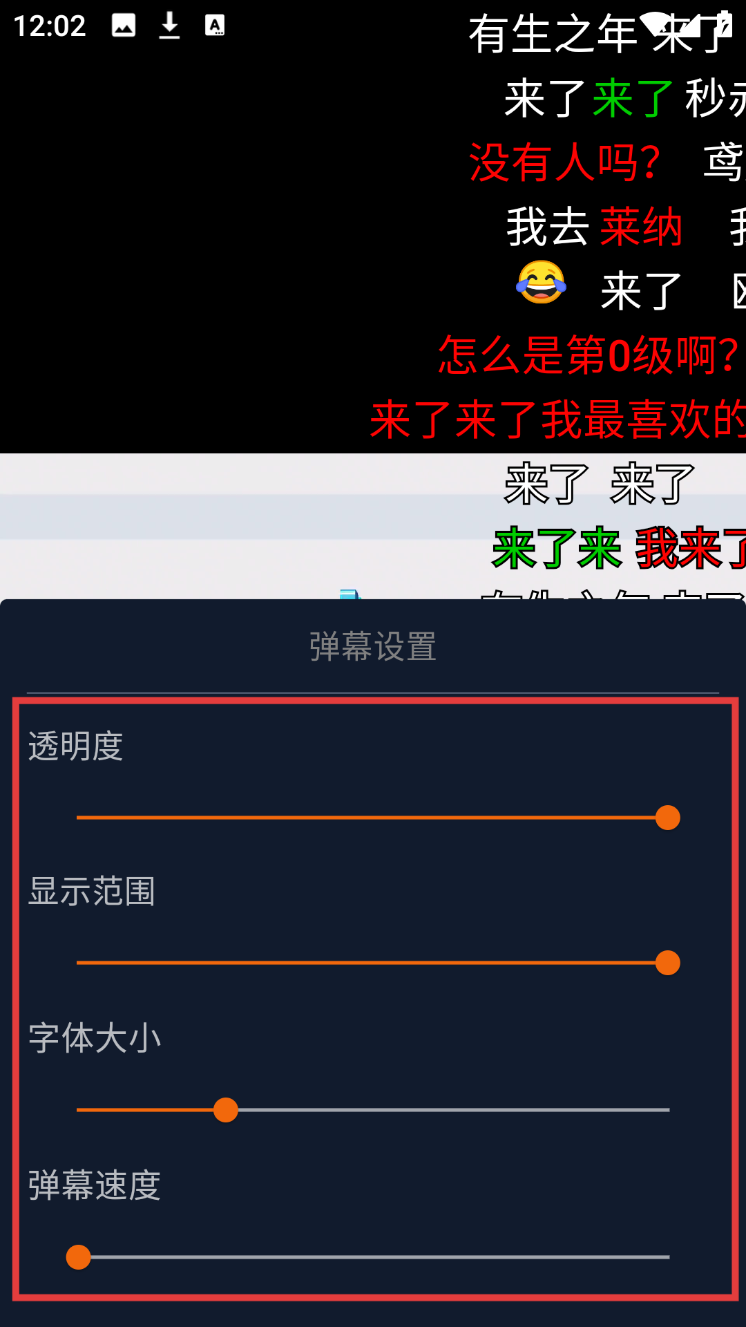 4、在弹幕设置页面,可调整透明度、显示范围、字体大小、弹幕速度等,让弹幕展示更符合喜好哦。