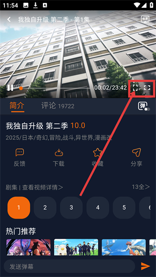 2、在动漫播放界面点击全屏按钮,可切换至全屏模式,获得更好观看体验啦。