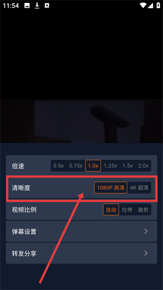 4、在功能列表中可调整清晰度,选择【1080P高清】或【4K超清】,让画面更清晰啦。