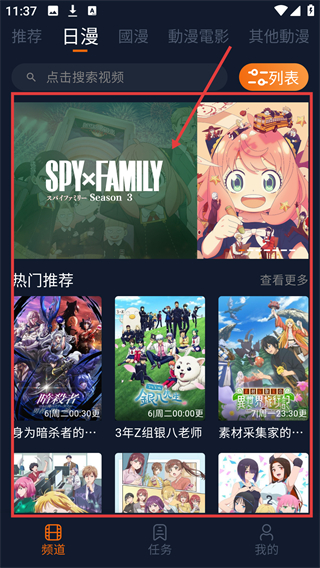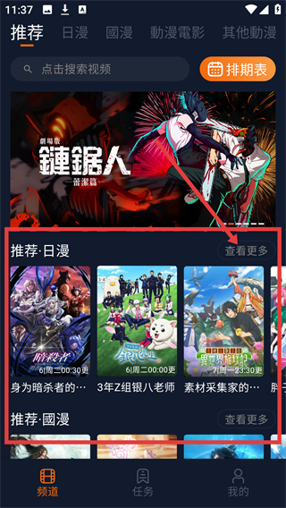 1、在软件频道页面,点击推荐日漫的【查看更多】,可浏览更多日漫内容,方便找到心仪动漫啦。