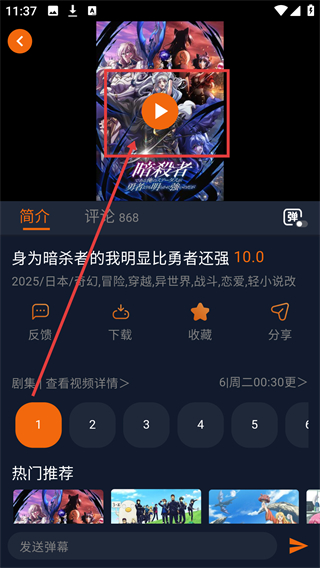 3、在动漫详情页,点击播放按钮,可开始播放该动漫,享受观看时光啦。