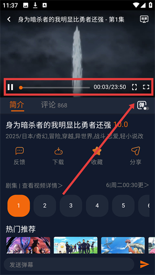 2、进入日漫页面后,可浏览热门推荐的日漫,选择感兴趣的动漫,如《身为暗杀者的我明显比勇者还强》,进入其详情页哦。