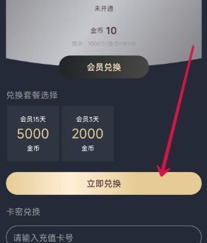 2、还可以使用金币兑换会员哦,其中5000金币可以兑换15天会员,2000金币可以兑换3天;