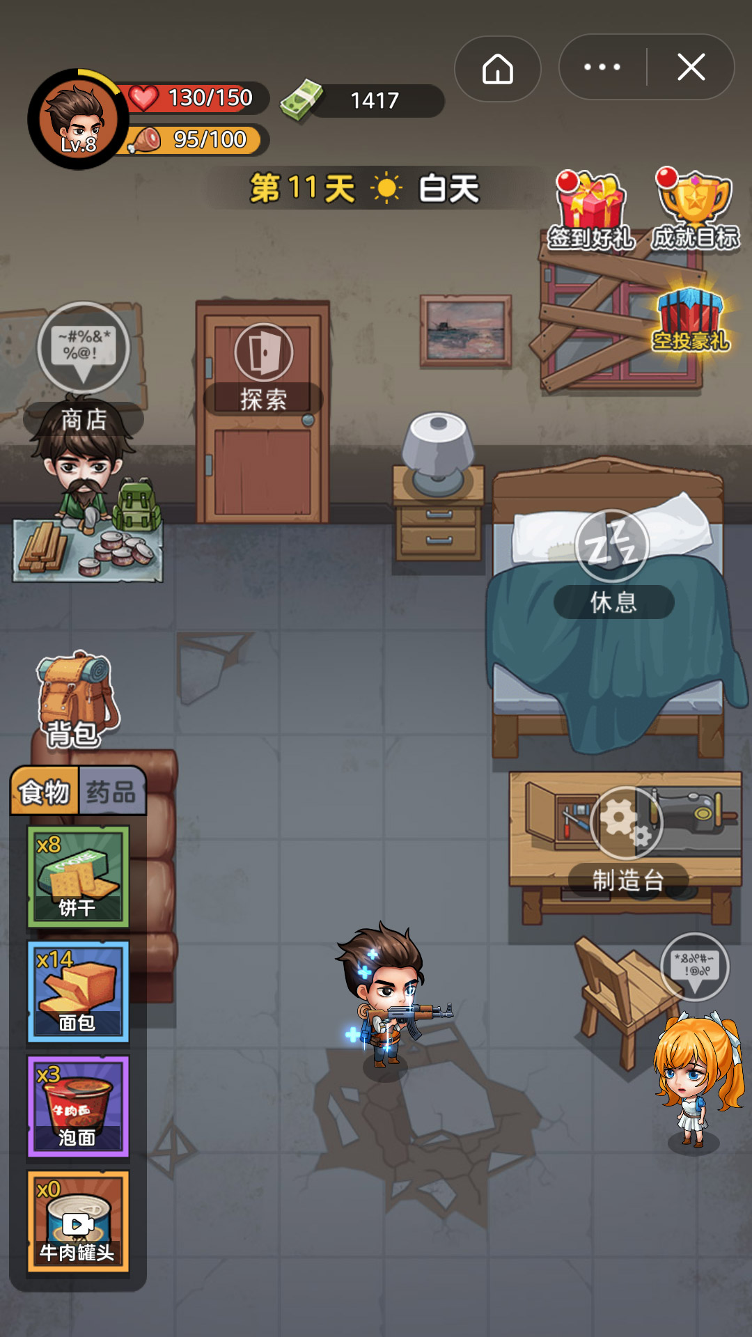2、你必须在自己的住所过夜,白天要出去寻找各种材料和物资,这在游戏里面特别的关键。