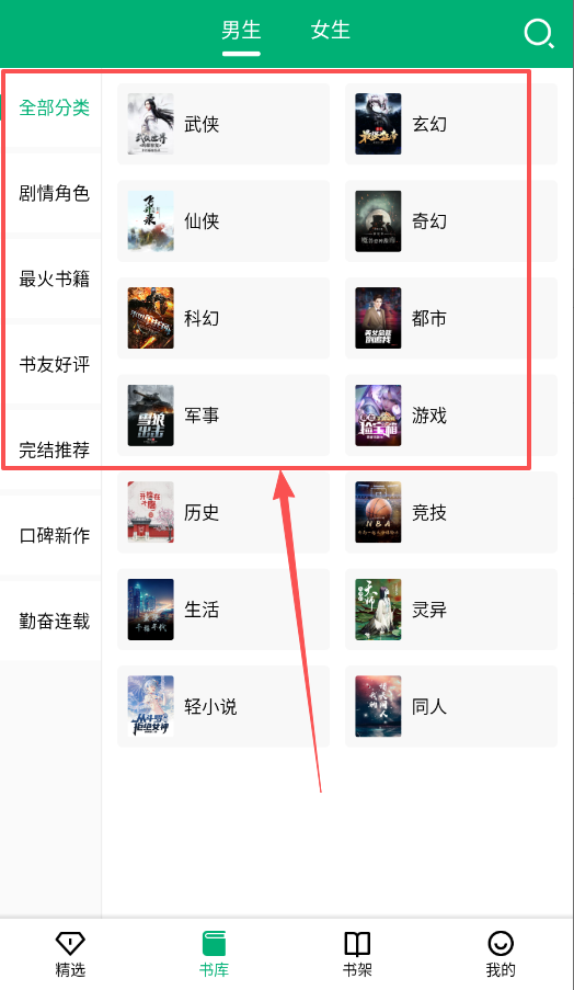 2、“全部分类”功能很强大,不仅按“玄幻”、“奇幻”等题材分,还提供了“最火书籍”、“完结推荐”等榜单,避免书荒。