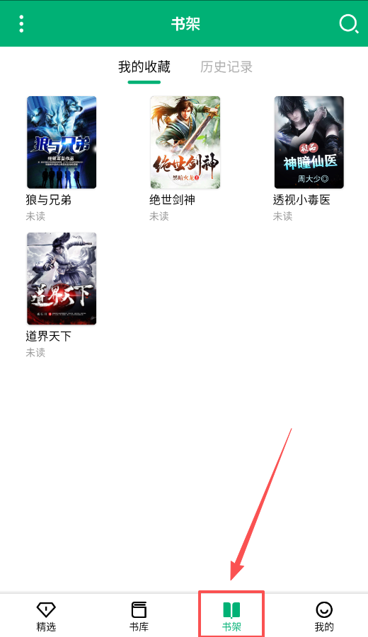4、所有你在追的书都集中在“书架”里,未读章节会有提示,通过“书架”管理你的阅读进度是最方便的。
