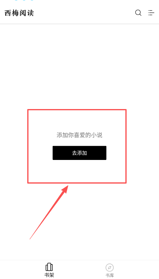 1、打开软件后,先别急着找书,留意一下底部的“书架”和“书库”导航,新用户的书架是空的,点击“去添加”就能开始填充了。