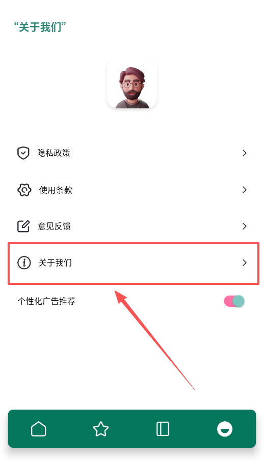 4、最后记得点开“关于我们”页面,那里有隐私政策和使用条款,你可以在意见反馈里提建议,也能调整个性化广告的开关。
