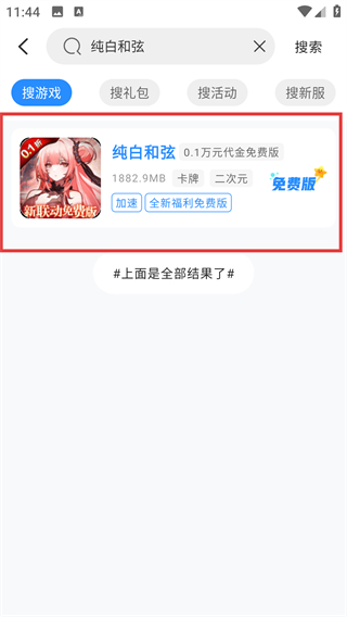 3、搜索后会显示对应结果,比如【纯白和弦】,点击该游戏条目就能进入它的详情页面啦。